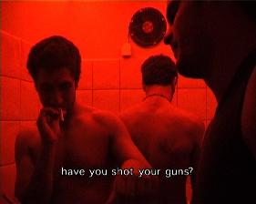 Shot in public toilettes, the video put into focus the interrelations between sexuality, violence and power and leaves an uneasy feeling.